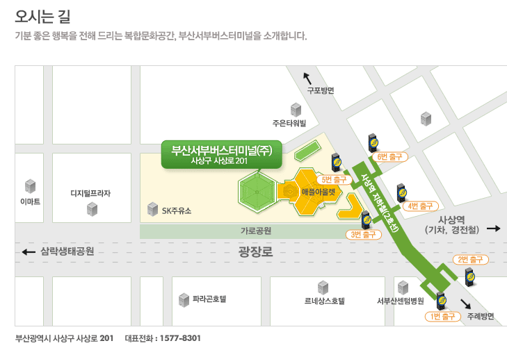 사상 시외버스터미널에서 제공하는 주요 노선 정보