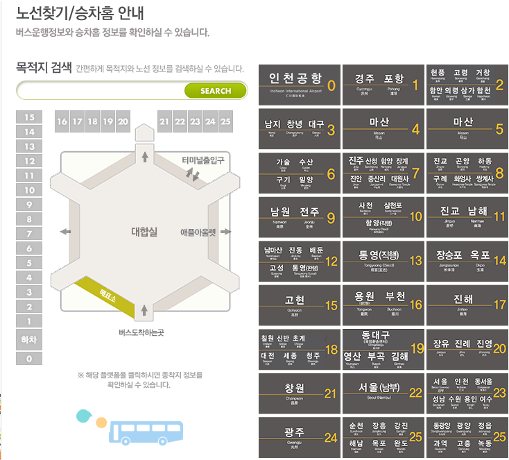 터미널은 정시에 출발하므로, 출발 10분 전에는 도착하여 대기하는 것이 좋습니다.