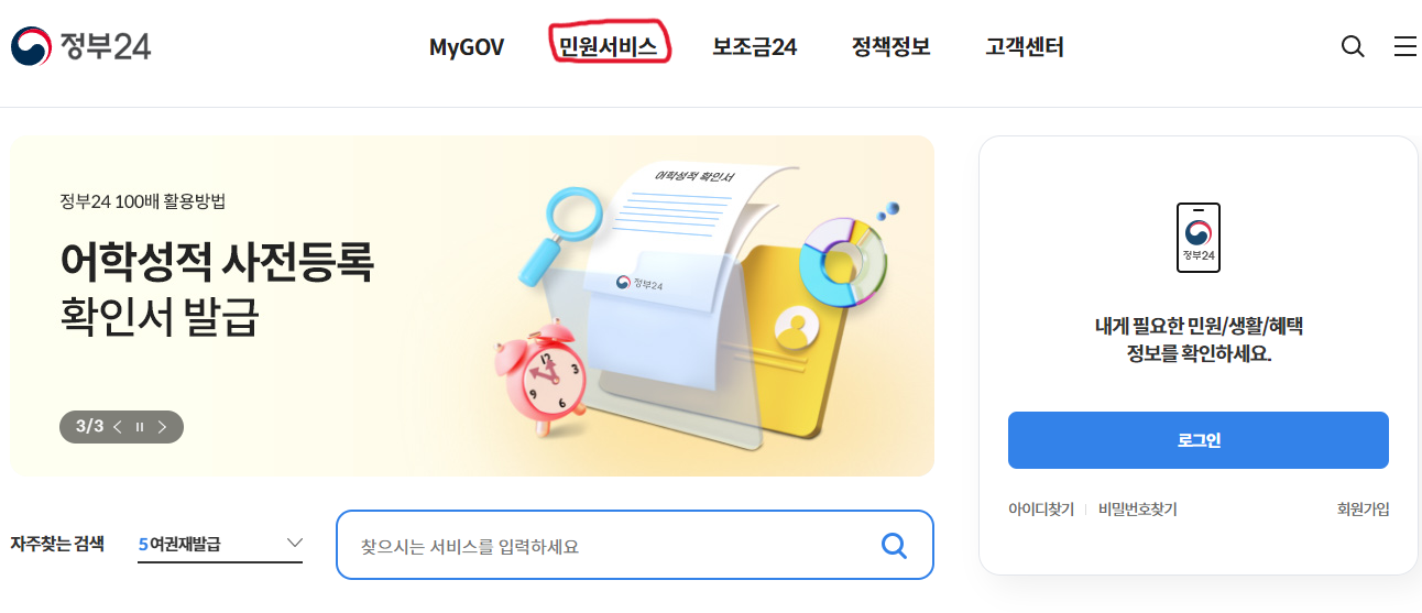 1. 정부24 홈페이지 접속