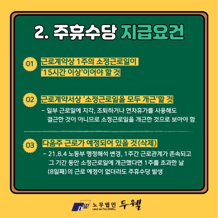 - 소정근로일의 의미: 소정근로일은 근로계약서나 사내 규정에 의해 정해진 근무일을 의미합니다. 소정근로일의 개념은 근로자가 명확히 이해해야 하며, 이를 기준으로 주휴수당이 계산됩니다.