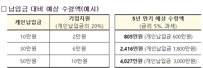 - 근로자와 기업주 간 협의: 월 납입 금액과 납입 기간에 대해 협의합니다.